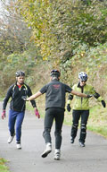 Ideally by the end of the programme, all beginners would be of a level able to take part in the open track sessions at UCLan that are run over the late spring and summer (see Events page for details) or for a cross‑country holiday on snow. Those with some previous experience should be ready for anything: loppet racing, touring on snow, or the Northern Roll challenge which involves four one‑hour events organised once a month in May‑August at venues in the North West and North East of England. Open track sessions for roller skiers with their own equipment are also held for several weeks in late autumn/winter at the Tameside Cycle Track in Ashton‑under‑Lyne (see Events page for details) to help skiers prepare for forthcoming winter holidays on snow. SnowSport England Courses